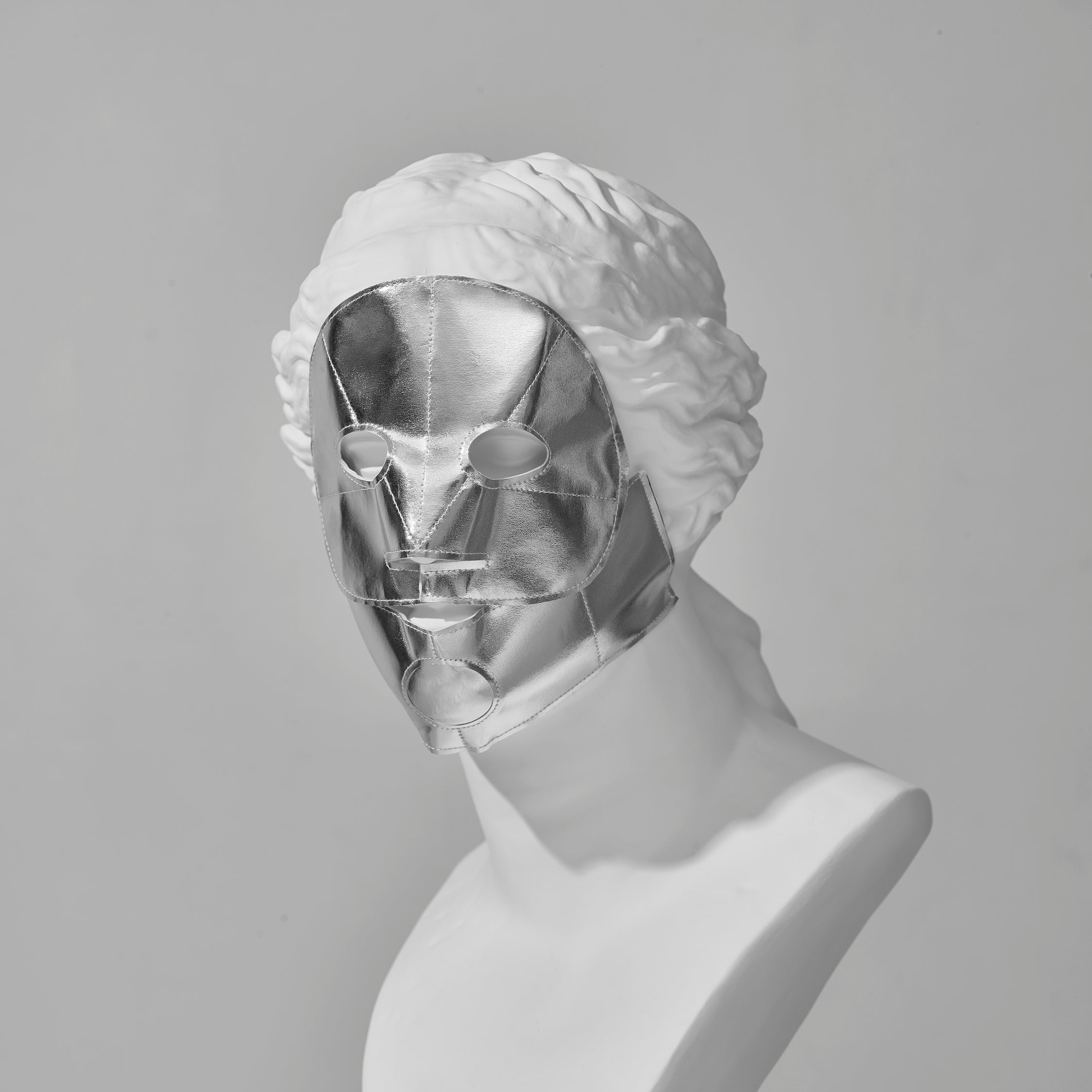 顔の構造に合わせて縫い上げられた独自のシートマスクを開発。顔の筋肉に沿って圧をかけることで、効率的にお顔を引き締めます。
